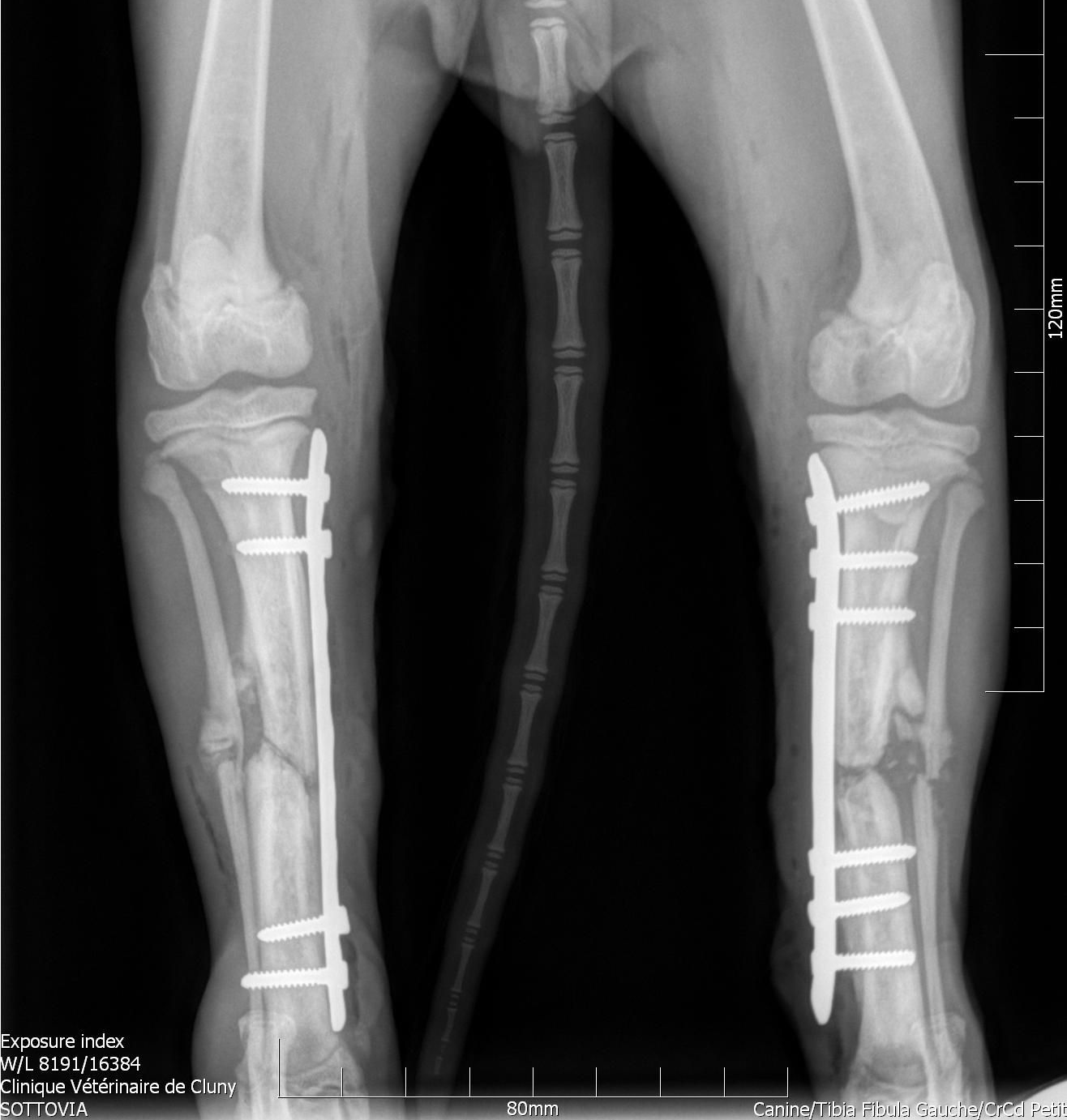 Une fois la chirurgie réalisée, des nouveaux clichés seront réaliser pour s'assurer de la bonne mise en place du matériel orthopédique.